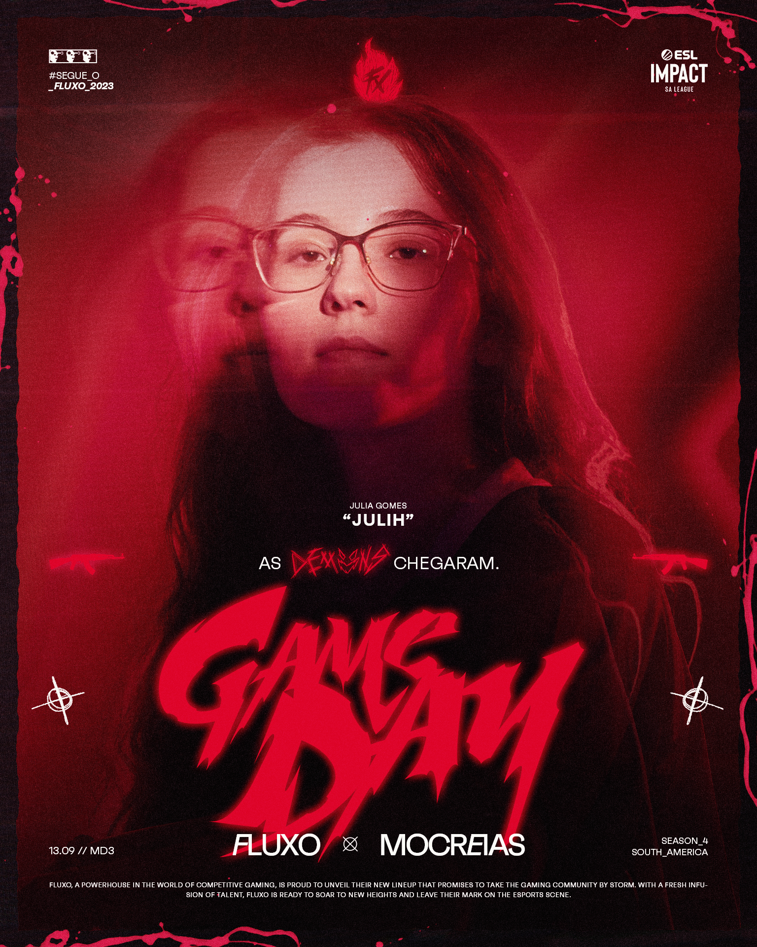 Não é à toa que elas são chamadas de Demons. O que para uns é uma maldição, para elas é sinônimo de um pacto de nunca desistir. Se elas sempre são as demons, agora elas vão realmente fazer o cenário virar um inferno para quem ainda duvida.Elas chegaram no Fluxo. Para anunciar a chegada do primeiro time Feminino de CS do Fluxo, e um dos melhores do mundo, criamos o conceito Fire in The Hell, desdobrando esse conceitual visualmente em todas as peças da campanha.